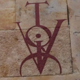 Los signos pasaron y llegado el Siglo XIV algunas universidades españolas adoptaron el símbolo, especialmente la de Salamanca, Alcalá de Henares, Sevilla y la de las Indias, como emblema conmemorativo de quienes obtenían el título de doctor, máximo nivel de estudios. Cuando se doctoraban, los estudiantes hacían una fiesta y con la base de sangre de toro, almagre y barniz, y pintaban en las paredes de la universidad, en rojo intenso, el anagrama junto a su nombre y año. Lo que era un «graffiti» de la época, más de 500 años.